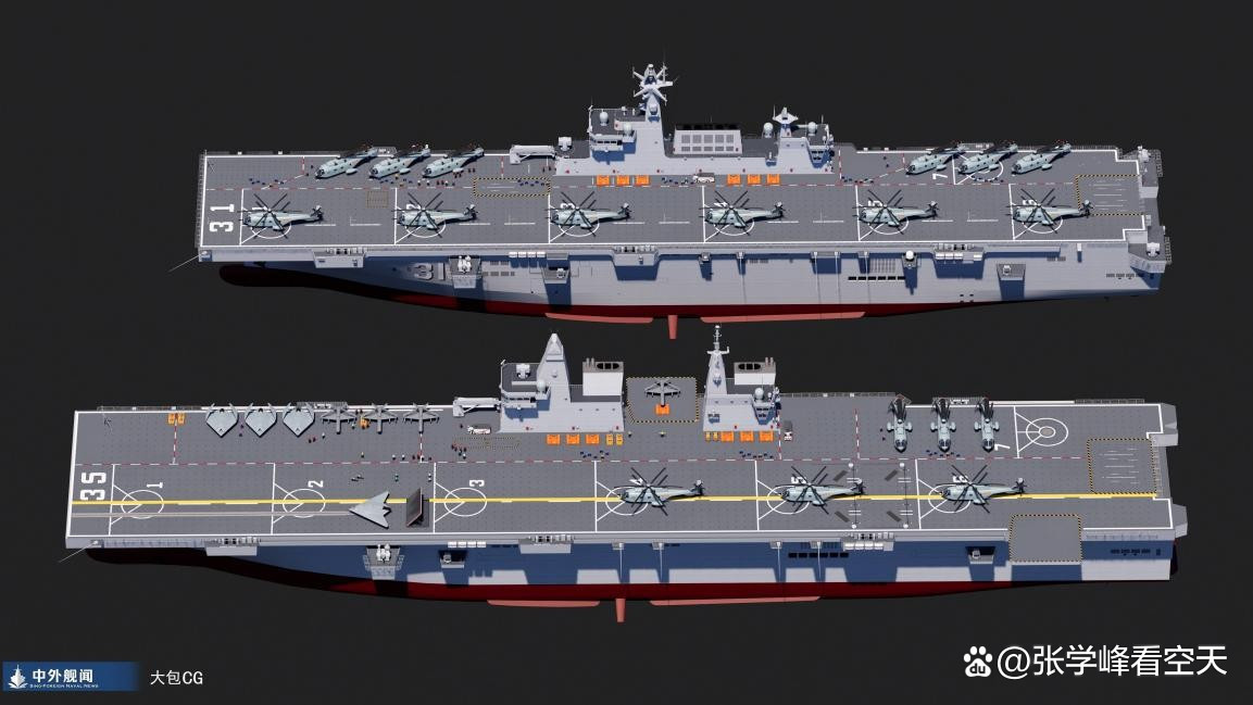 分析认为,和以往的两栖攻击舰更加注重兵力投送性能不同,076型两栖攻击舰和美国海军的美利坚级两栖攻击舰一样,更加注重航空力量的运用。